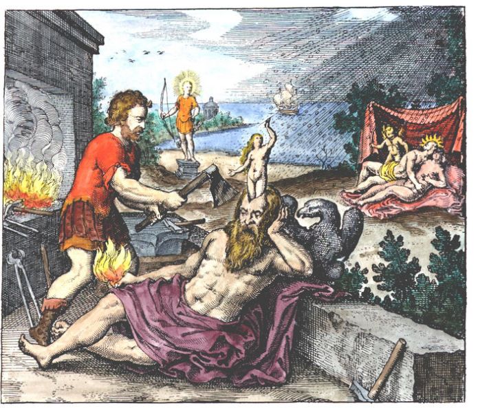 Mercury-Hermes stealing the “waters” (menses) of Aphrodite-Venus | Nicolas de Locques, Les Rudiments de la Philosophie Naturelle, Paris, 1665. © Adam McLean 1997-2017 (alchemywebsite.com). Used with permission.