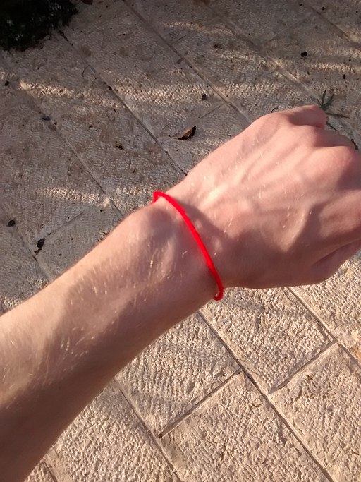 A red string (Kabbalah), given out near the Western Wall. (Source: Wikipedia. CC0 1.0)