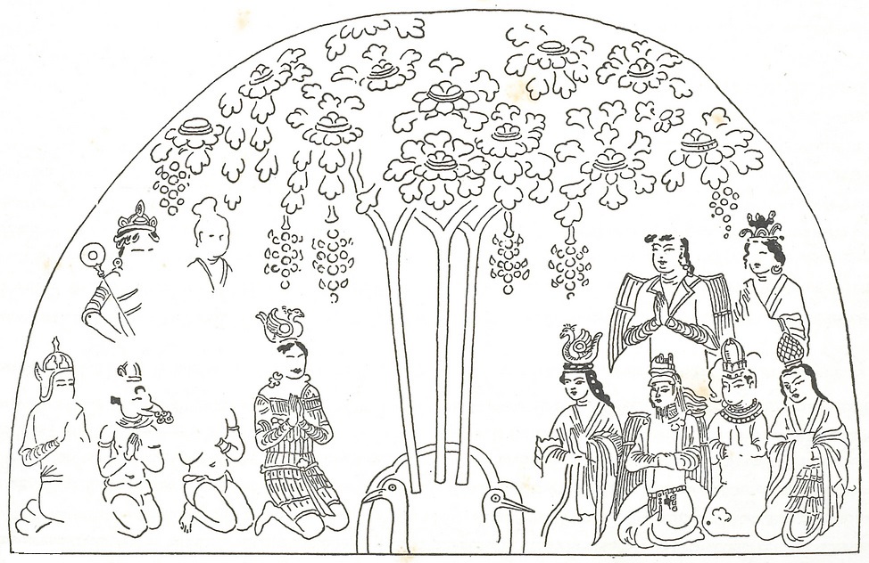 Manichaeans worshiping the Tree of Life in the Kingdom of Light, from cave 38 (cave 25 by Albert Grünwedel) at Bezeklik Caves. (Source: Wikipedia)