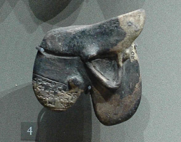 Divinatory liver, clay models for training soothsayers. Baken clay, 19th–18th C. BCE, royal palace at Mari (Syria). (Louvre AO 19837)