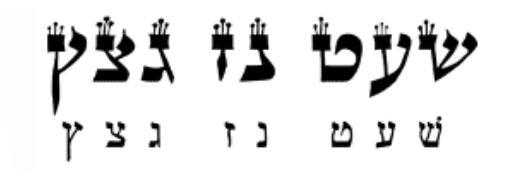 The Sha’atnezgets letters – sacred Ktav Ashurit “Assyrian” script (top), modern Hebrew square script (bottom)