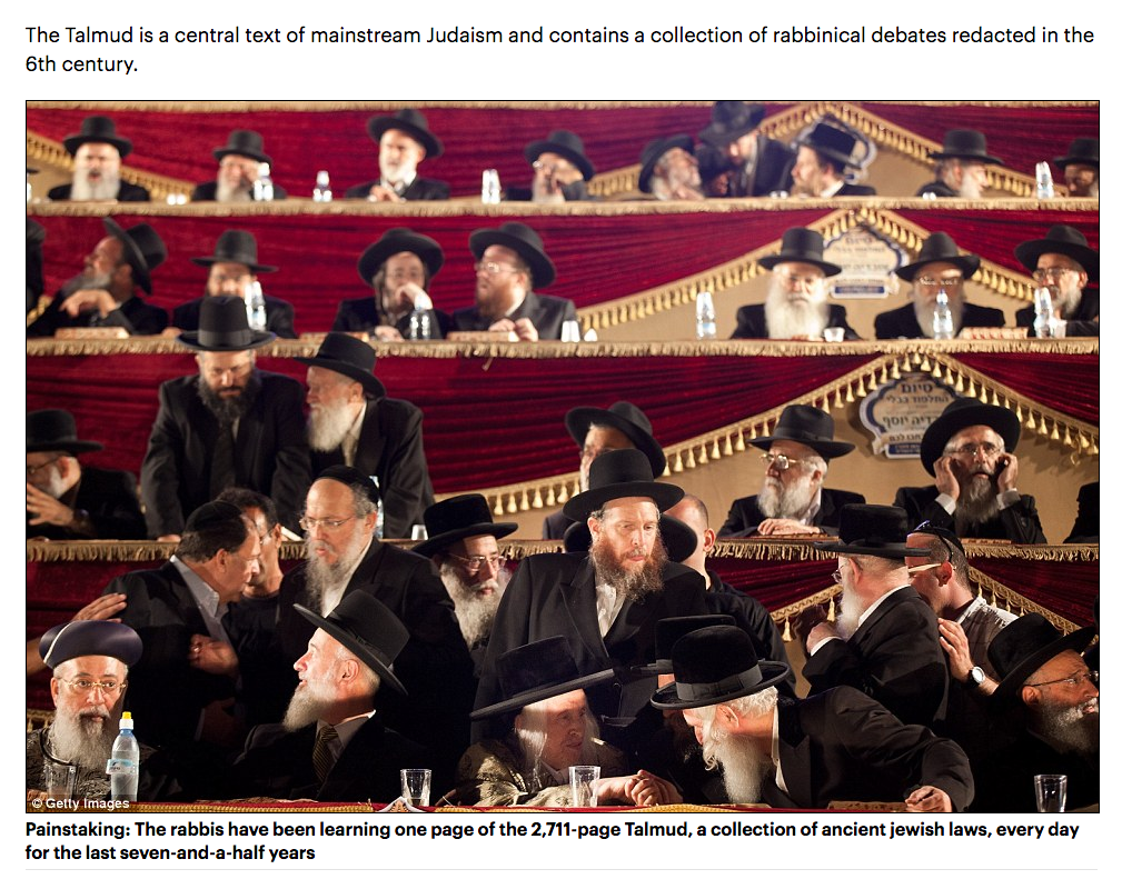 Daily Mail UK, 2 August 2012 – “Tens of thousands of Ultra-Orthodox rabbis celebrate after completing their study of the Talmud religious text”
