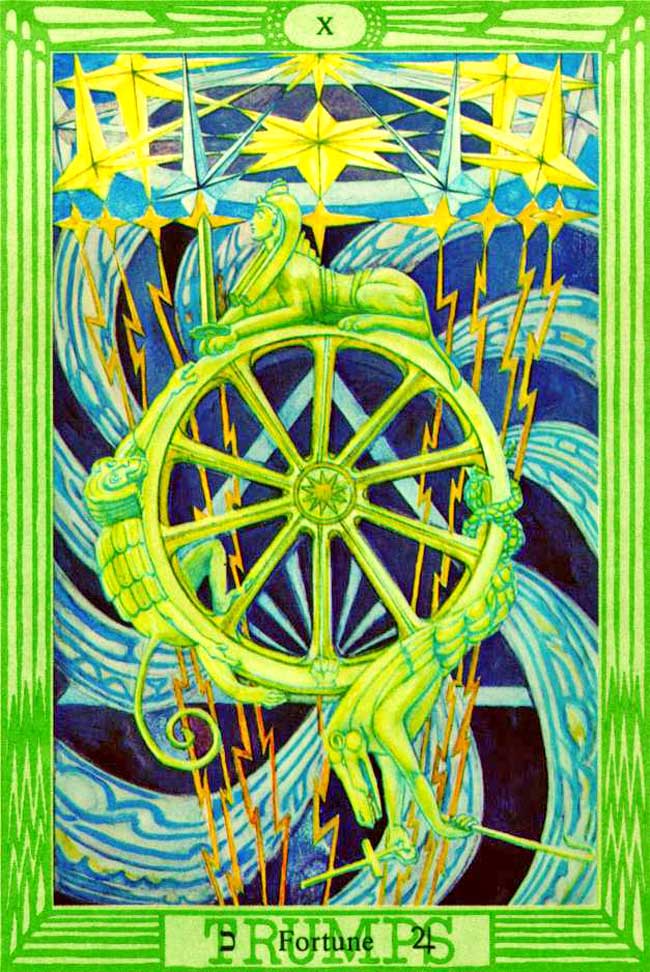 X. Fortune (Thoth Tarot by Aleister Crowley). 11th letter (Kaf) + Jupiter ♃