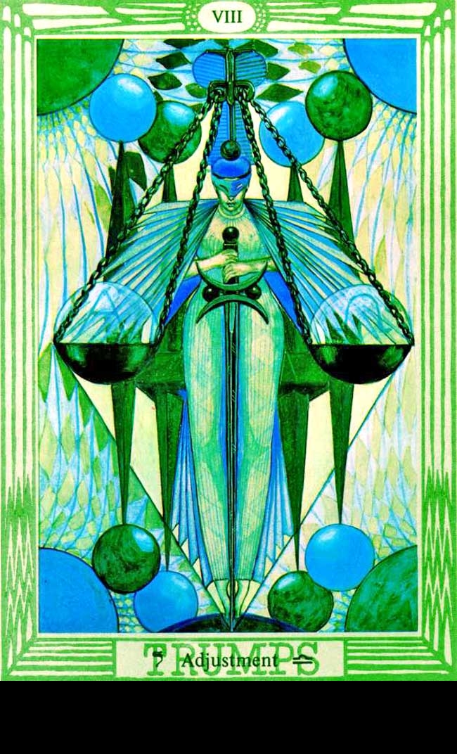 VIII. Adjustment / ‘Justice’ (Thoth Tarot, by Aleister Crowley)