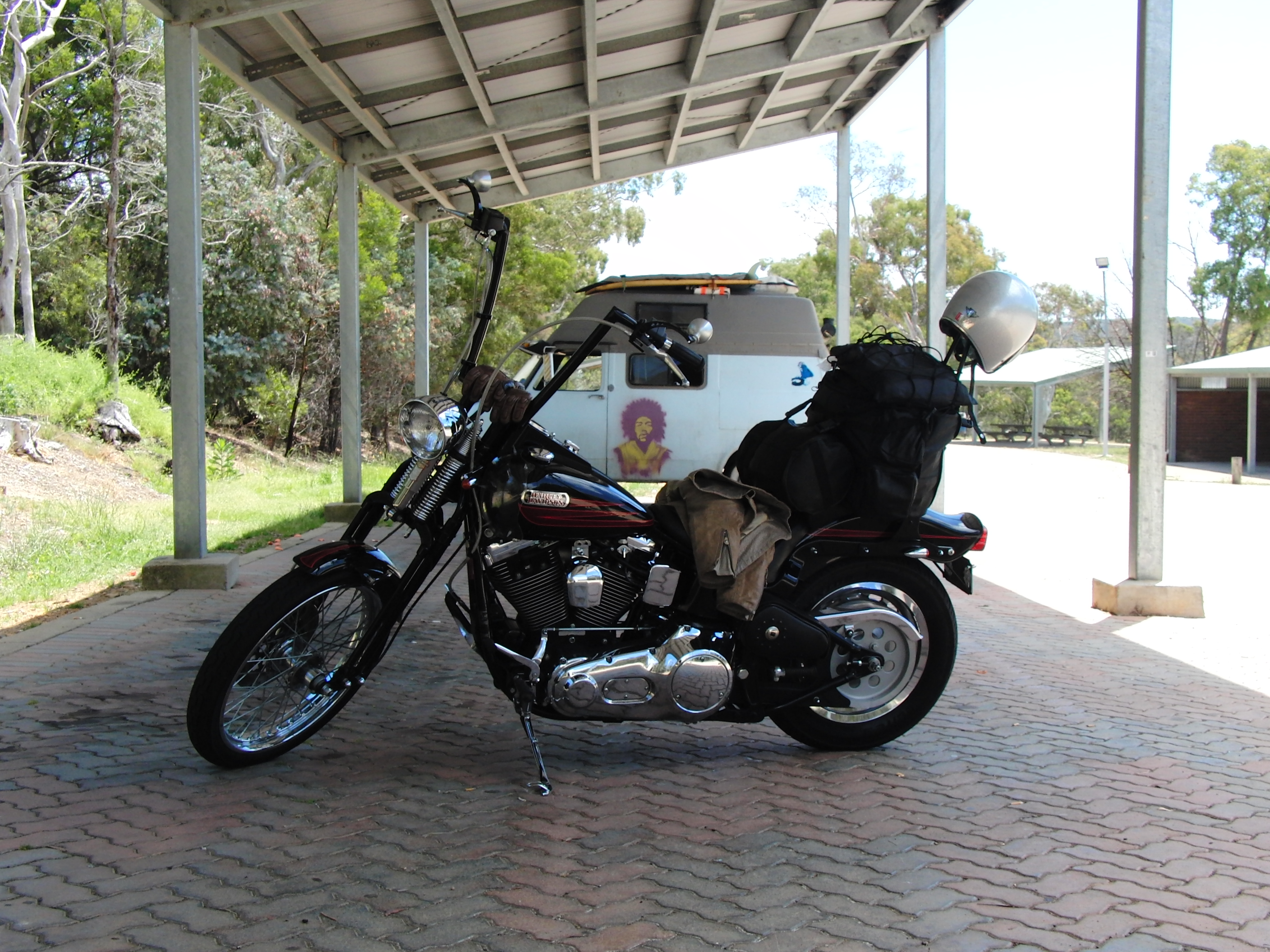 A few minutes later, as I rummaged through my new leather sissy bar bag — US$59.95 at Jafrum.com — for my 100% pure merino wool long sleeve motorcycle undergarment — $30 at Aldi — a rather tall and slender older gentleman of somewhat distinguished silver-bearded appearance and dignified carriage walked over from a large 4WD that had pulled up immediately behind, and engaged me in conversation.