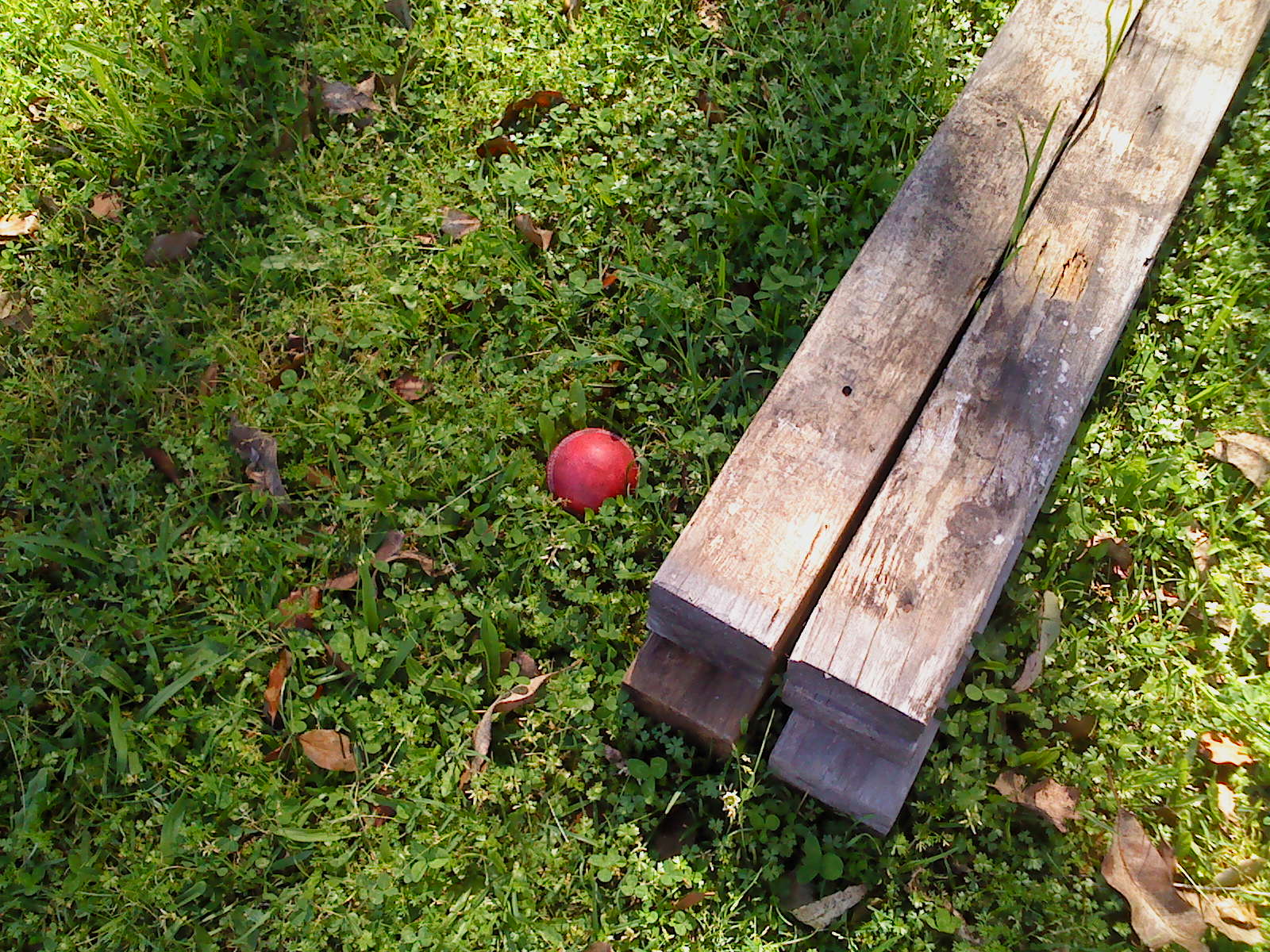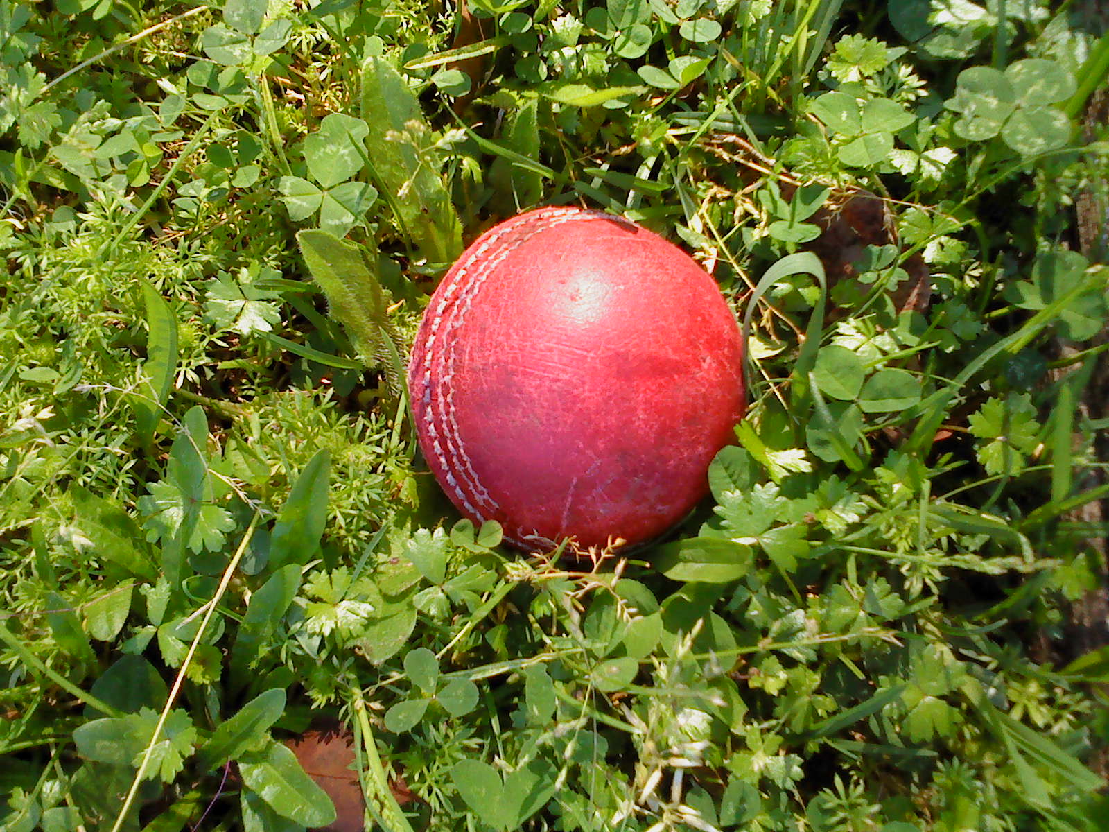 There I spotted a cricket ball nestling down in the grass.